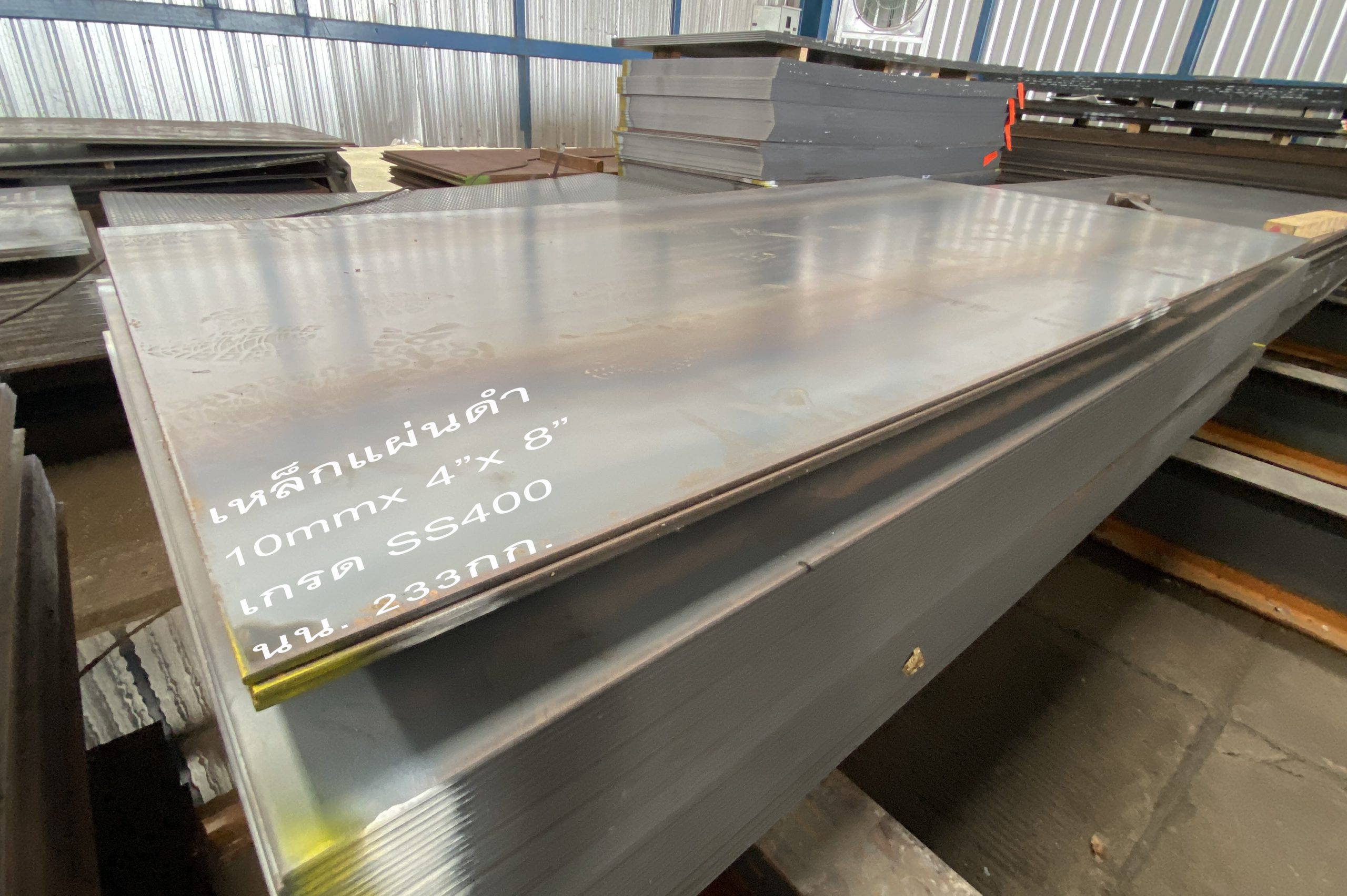 เหล็กแผ่นดำ / Steel plate เป็นเหล็กรูปพรรณเกรด A มาตรฐาน SS400 สำหรับงานโครงสร้างทั่วไป การปูพื้น การเชื่อมต่อโครงสร้างยานยนต์ งานเหล็กแผ่นต่อเรือ